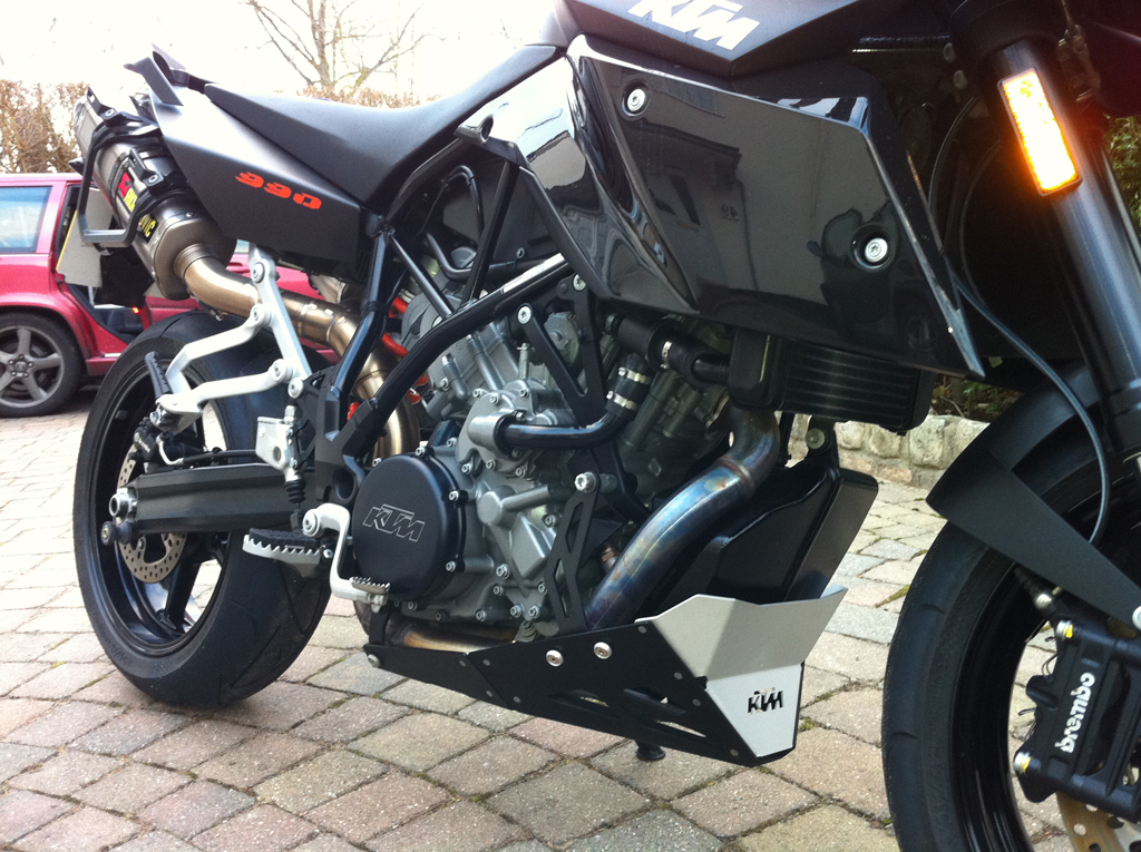 Original exhaust, Engine protection, CNC Clutch cover, Orange side panels, Optimate-3, aluminium front stand, and SM 990 seat included.